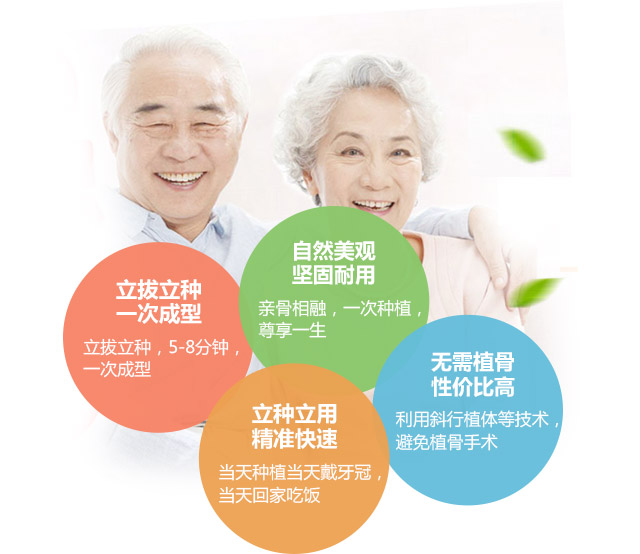 " 立得用"种植牙体系不是一项单一种植牙技术,而是一套完整的种植牙体系。突出特点:”立种立食“,当天种植, 当天即可回家吃饭咀嚼。